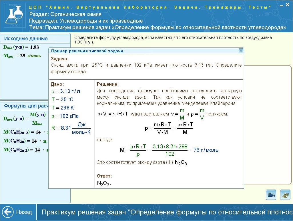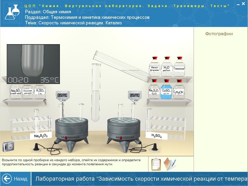 позволяет полностью имитировать процедуры выполнения опытов в реальной химической лаборатории. В лабораторию